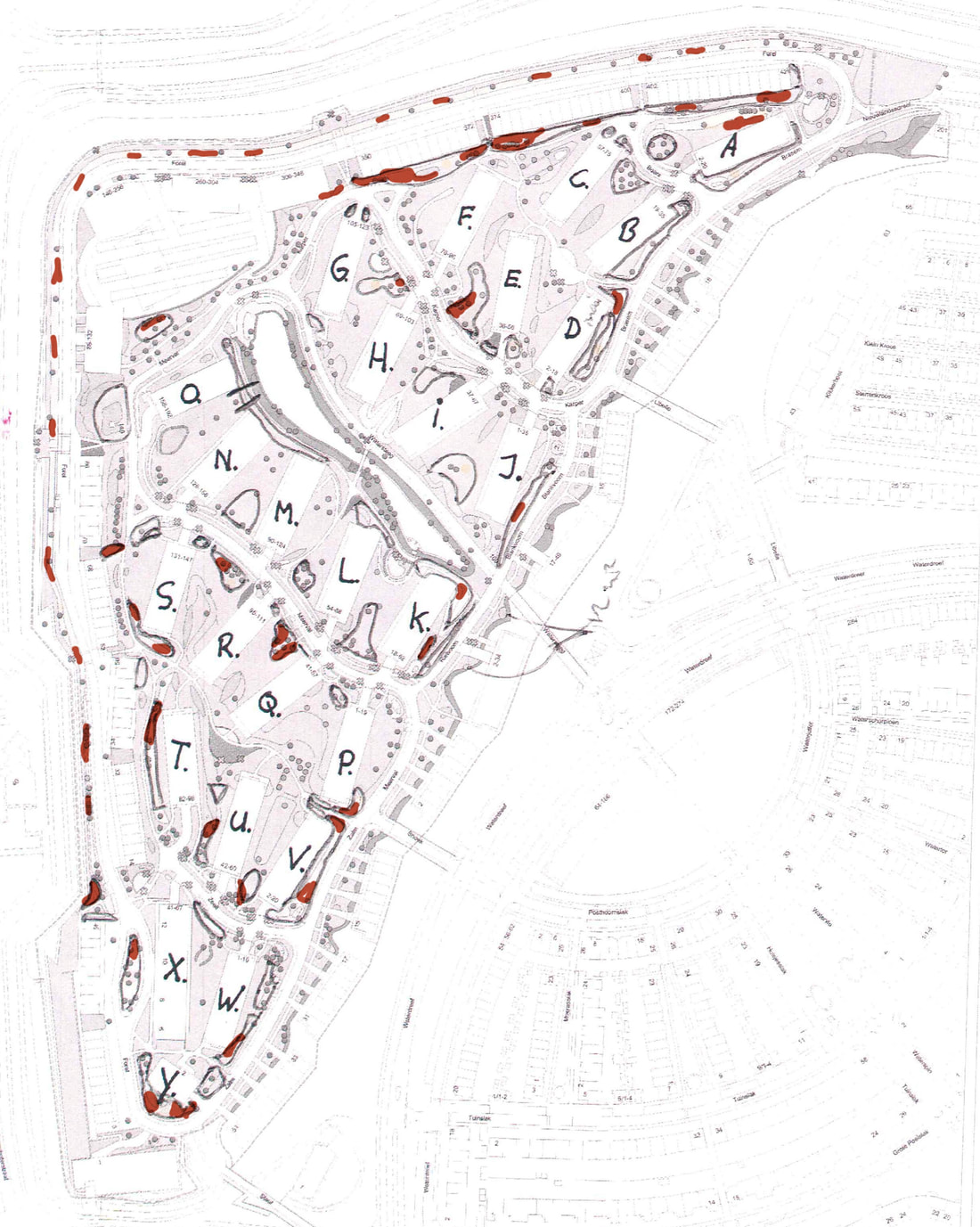 De stukken die we gaan maaien zijn op de maaikaart aangegeven met rood. Het kan zijn dat er enige nuances plaatsvinden op een locatie. Dat bepaalt de maaier op het moment van maaien. Sterk vergraste stukken etc. worden eruit gemaaid.