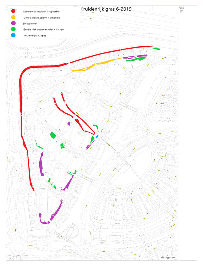 Het maaien gebeurt net zoals vorig jaar, maar wel zijn de locaties weer opnieuw beoordeeld en ingedeeld. Zie kaartje hieronder.